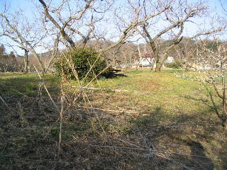 郭内部は果樹園になっている。 北側に段差があり低くなっている。 |