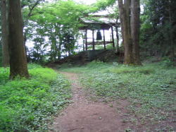 鞍部の入口は虎口状になっている。 | 鞍部の平坦地にある月居観音。 |