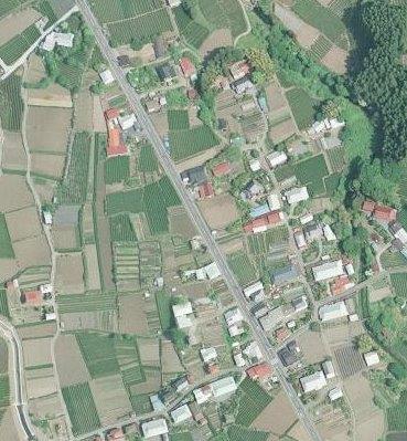 「さはら小学校」前から県道205号線を約1.5q、栃木県境方向に進んだ場所の字名が「堀の内」である。(北緯36°50′2″、東経140°16′17″) 花室神社の南側である。 名前から城館を想定させる字名である。とりあえず「佐貫館」と仮称する。 周囲は茶畑である。 県道205号線の西側の茶畑の中に下の写真に示す南北に長い堀跡のようなものがあり、北側の民家の裏に土塁跡のような土壇がある。 それ以外の堀等の痕跡は確認できない。 航空写真を確認したが、方形の居館があったような感じもするが、極めて曖昧であり、範囲が特定できない。 さて、真実は如何に? (右の航空写真は昭和50年国土地理院撮影のもの) |