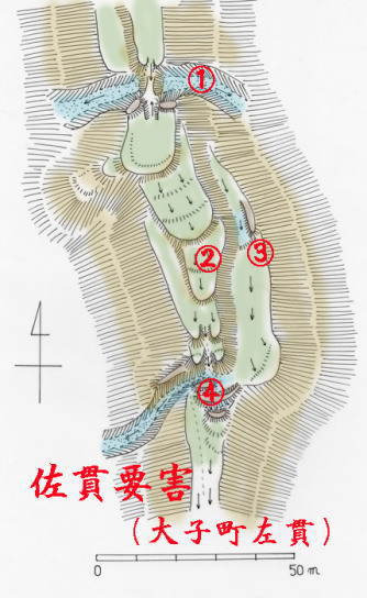 2の半月状横堀。鉄砲射撃陣地に見える。 |
