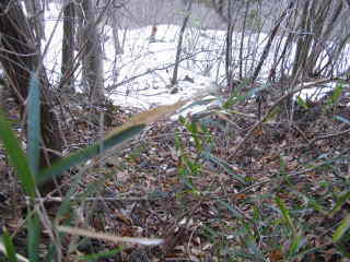 本郭の北側に虎口がある。 虎口の下に雪に覆われた帯曲輪が2段あった。 |