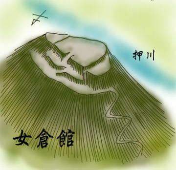 依上小学校のすぐ西側に岩山が聳える。ここが女倉館である。