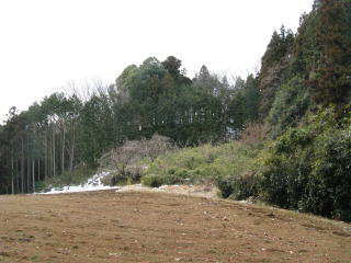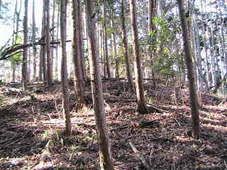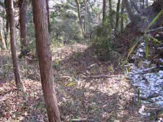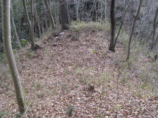 | 南側の尾根にある4の堀切。 | 南側の尾根先端6も見張り台か? これはその下の曲輪。 |