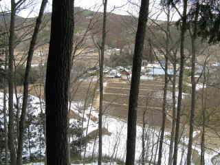 | 館跡推定地の虎口付近から見た宿の集落。 ここは集落より40mほど高い場所にある。 |