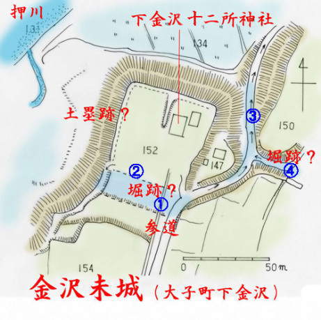下金沢(かねさわ)未城ともいう。