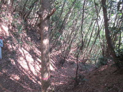 | 主郭から東120mにある堀切?深さ約4m。 | これは堀切を転用した通路なのか? |