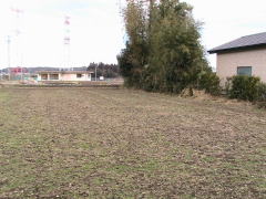 | 「大館」「大築地」「枡形」ともいう。 白旗城の東800m、黒羽市街地から県道182号を約1.2km、北西の黒磯方向に走行した道路右手(東)にある。 ここは東に那珂川を望む河岸段丘上である。 県道からは畑や宅地の中に古墳のようなものが見える。これが館の土塁の残痕である。 何か所か確認できる。 遺構はこの程度であり、ほとんどは宅地や畑となってしまい湮滅している。 |
