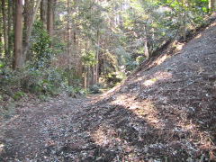 | 郭U東下の本郭に登る路。郭U東側に も曲輪がある。 |