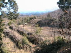 | 郭5から見た郭4。 一段高く、その間に堀があったらしい が埋められ、土塁は崩されている。。 |