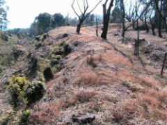 本郭北は堀@で遮断する。 | 本郭東下の帯曲輪。 さらに1段下にも帯曲輪がある。 |