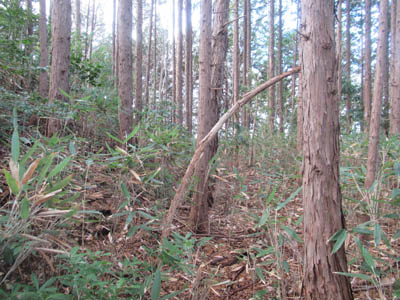 星宮神社跡地側からアプローチしたが、孟宗竹が刈られて束となっており、とても入れそうにない。