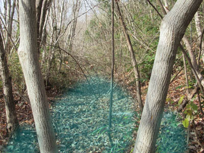 | C東端の東に延びる尾根から北下に下る竪堀?道? | D本郭から南下に下る竪堀状通路 |